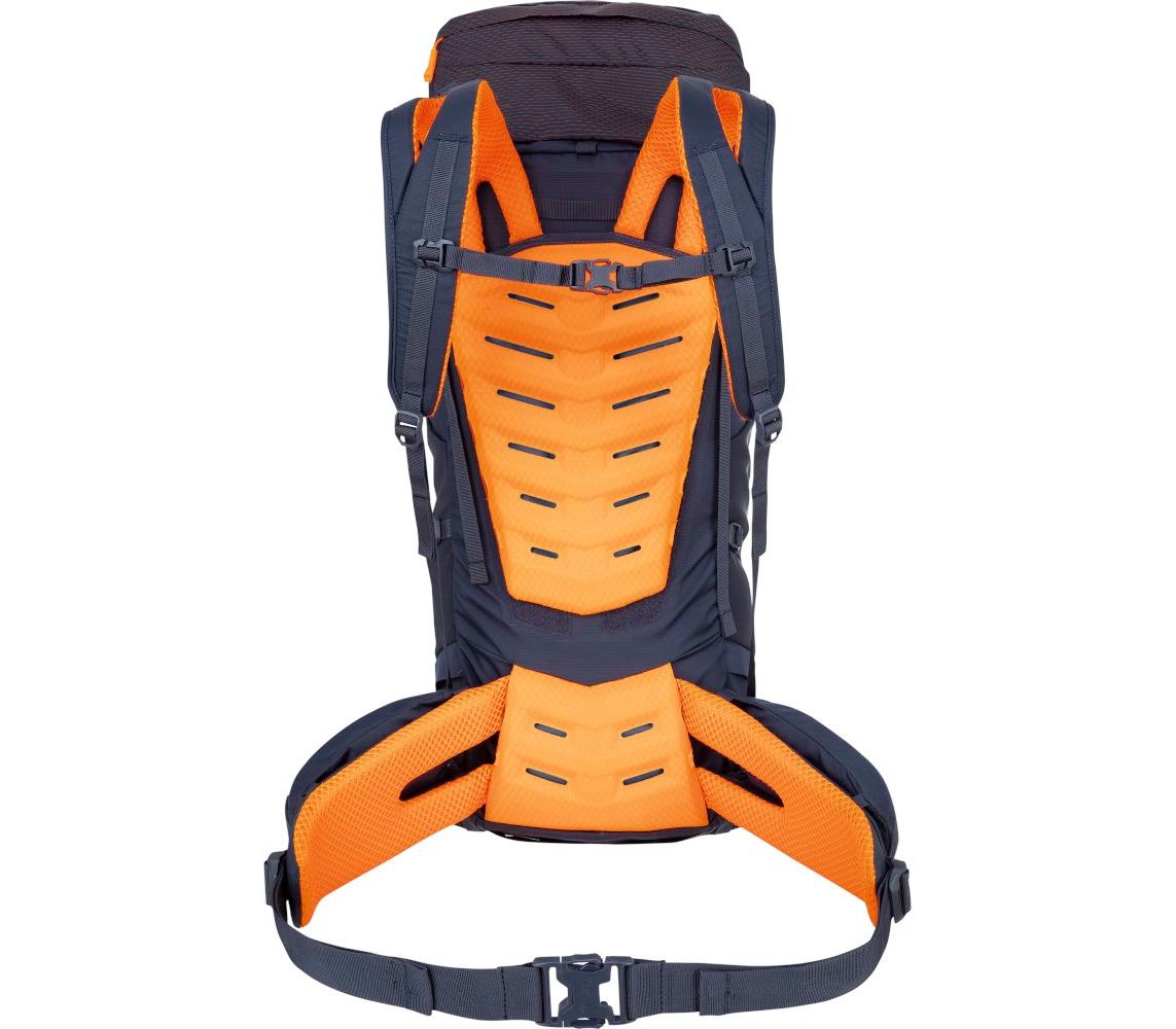 Технологічна спинка Dry back custom та чудова вентиляційна конструкція, завжди забезпечуватимуть сухість і комфорт спини. Ергономічна внутрішня задня ISB панель забезпечуватиме стабілізацію посадки рюкзака на спині. Перевагою такої панелі є можливість її відкріплення для зменшення загальної ваги рюкзака. Гнучкі розділені наплічні лямки анатомічної форми добре лежатимуть на плечах, а стегновий пояс з зручними кишенями дозволить відрегулювати посадку рюкзака, щоб почуватись впевнено і комфортно під час подорожей або альпійських сходжень. Відрегулювати зручну посадку можна також завдяки регуляційним стропам на плечових лямках.