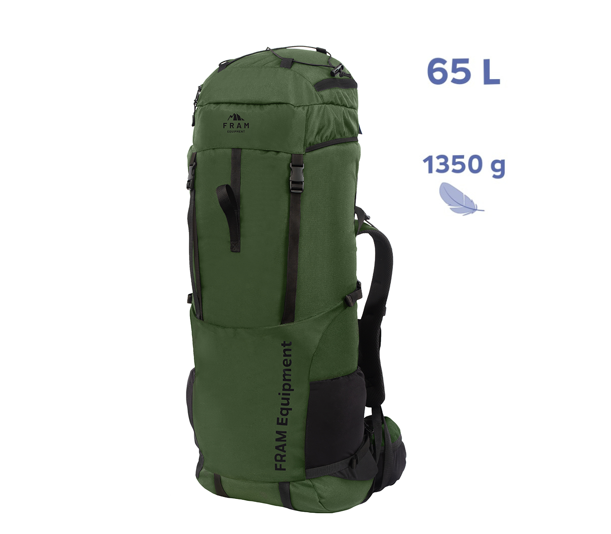У версії 65л додалась фасадна ручка і стропа - перекидка для регулювання об’єму