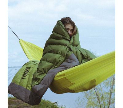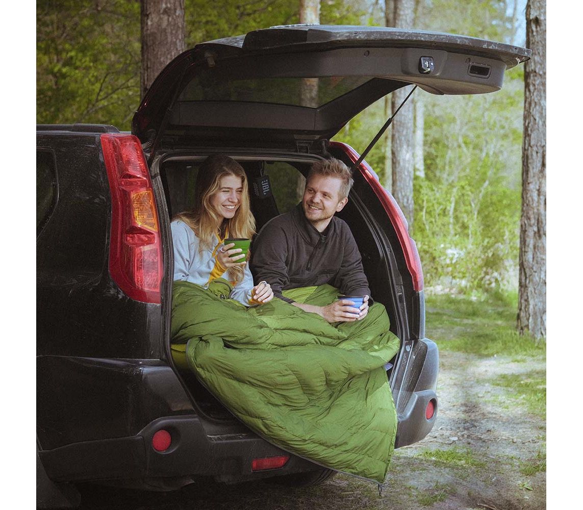 Великий пуховий спальник-ковдра для сімейного кемпінгу, автоподорожей, гамакування. Ширина спальника у розгорнутому вигляді (у режимі "ковдра") довзоляє вкритись двом дорослим людям, в літній час пари можуть використовувати одну річ, щоб зекономити місце і вагу. Він буде корисним тим, хто подорожує і спить в авто, в автокемпері, в наметі на даху авто.