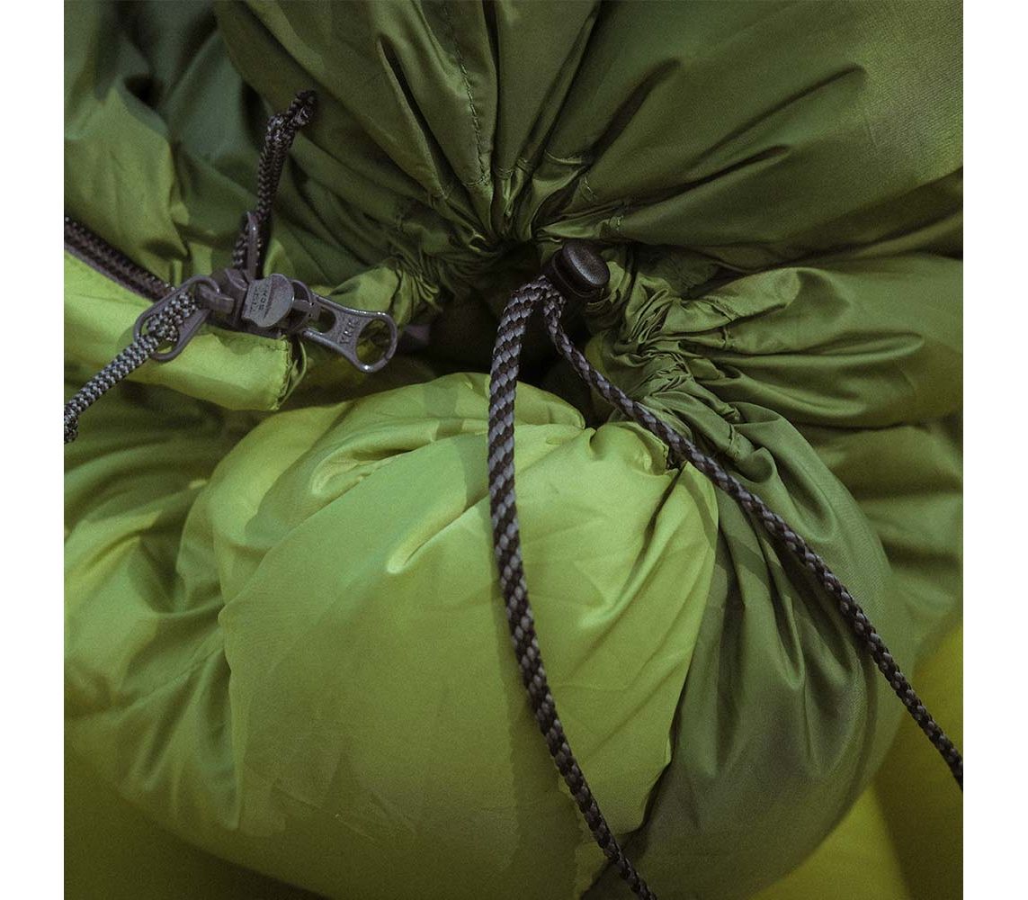 Закривається бічною блискавкою і стягується знизу, що утоврює одномісний просторий спальний мішок без капюшону. Завдяки стяжці знизу і центральній блискавці, спальник можна одягнути поверх гамака і таким чином утеплитись. Компактно пакується в чохол прямокутної форми, щоб ефективніше використати простір в рюкзаку.