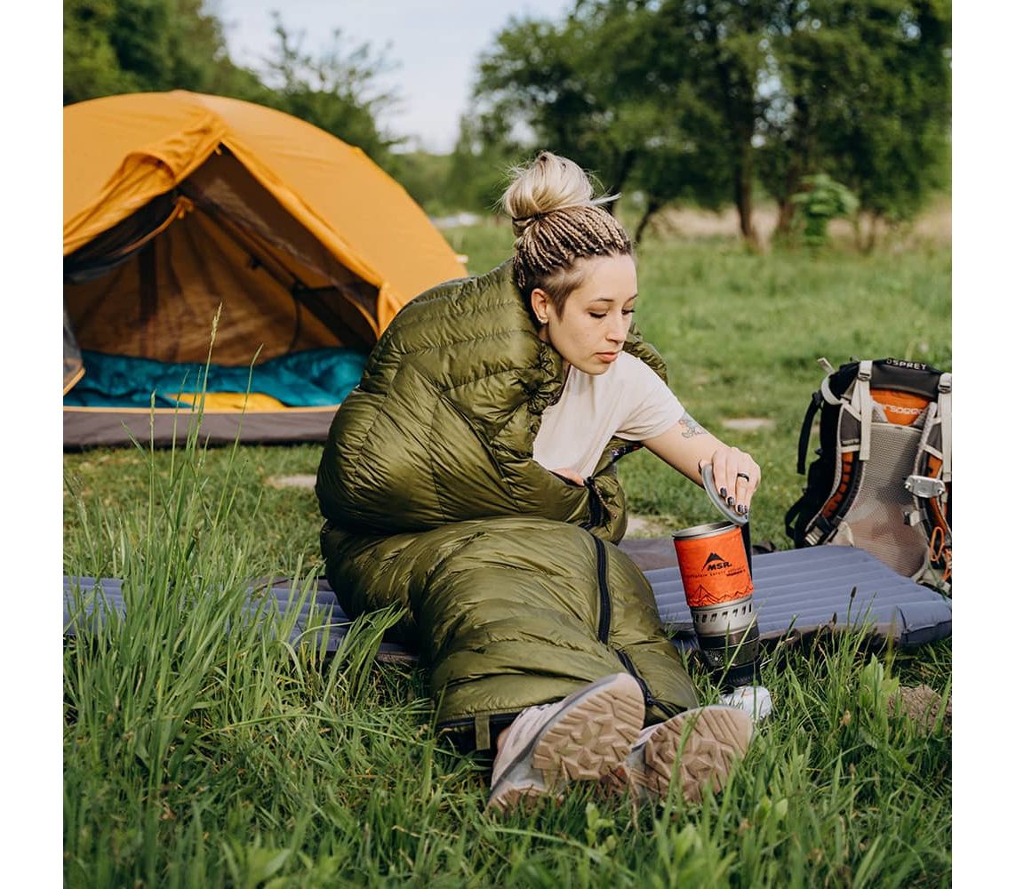 Утеплювач – український гусячий пух 800 Fill Power. Він легший за будь-який синтетичний аналог, добре зберігає тепло та відмінно компресується, завдяки чому спальник займає мінімум місця у рюкзаку. Водовідштовхуюче просочення пуху і тканини робить спальник більш стійким до вологих умов міжсезоння.