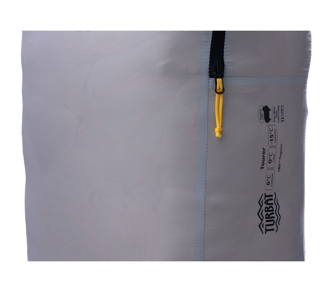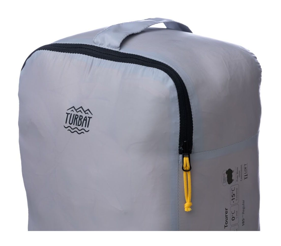 Turbat Tourer - новий синтетичний трисезонний спальник. Завдяки тонким тканинам та наповнювачу TTLoft Wool Insulation прекрасно компресується та мало важить, тому може бути альтернативою спальникам з пуховим наповнювачем. По своєму функціоналу і кострукції Tourer максимально наближений до пухової моделі Nox 250. У комплекті є квадратний чохол з мікрофлісом всередині. Чохол можна вивернути, щоб м'яка флісова сторона була зовні, і використовувати як подушку.