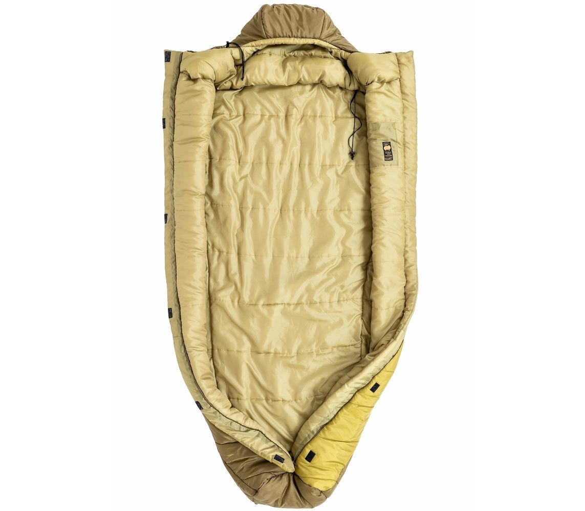 В спальнику використані матеріали японського бренду Toray. Має центральну блискавку на всю довжину і без самоблокування (роз'їжджається якщо тягнути). Завдяки цьому, в спальник легко залізти і швидко вилізти. Ще, спальником можна вкритись зверху, як ковдрою, якщо ночівля у теплих умовах. Об'ємна планка навколо шиї, на капюшоні та подвійний термозахист вздовж блискавки (ззовні і всередині) забезпечують додаткове тепло.