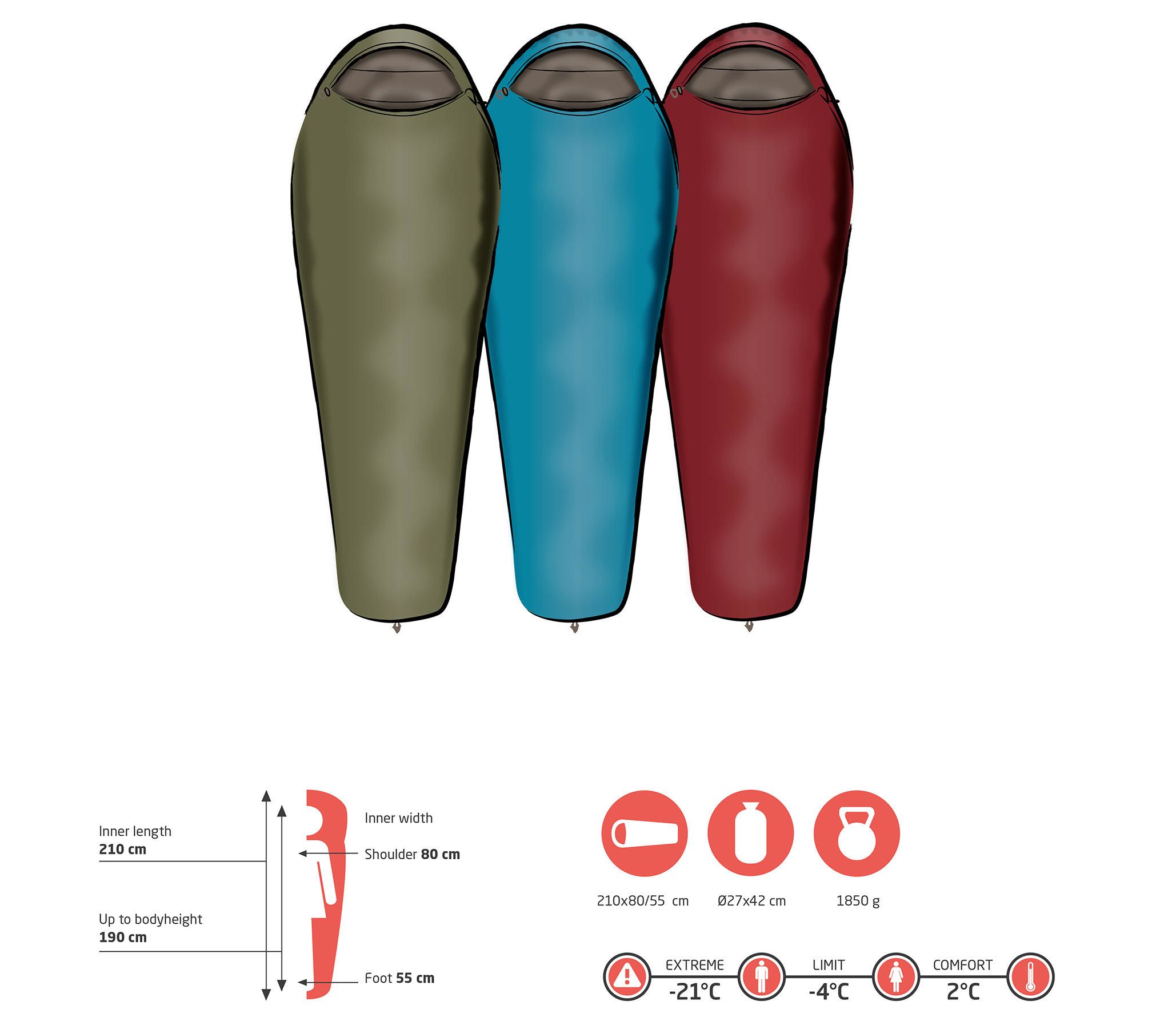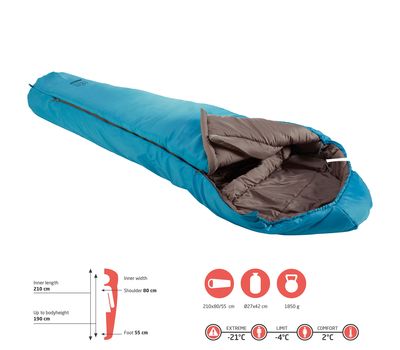 Ряд конструктивних деталей покликані підвищити теплоізоляційні властивості і ізолювати відпочиваючого від холоду, зокрема спеціальний комір із затяжками, що відділяє внутрішній простір від капюшона, утеплюючий борт вздовж блискавки, та форма кокона що повторює контури тіла людини, сприяючи кращому збереженню тепла. Нижня критична температура використання цього спального мішка в екстремальних умовах сягає -21°C. А при перегріві можна розстібнути блискавку знизу або зверху, при цьому зберігаючи тепло в ногах. Зовнішня оболонка спального мішка виконана із матеріалу Polyester Rip-stop - стійкого до порізів та розривів. В якості утеплювача застосований наповнювач з пустотілого мікроволокна Holoow Fiber, що має малу вагу та відмінні термоізоляційні характеристики. Цей утеплювач практично не схильний до "злежування" і забезпечує заявлений температурний режим сну навіть у вологих умовах.