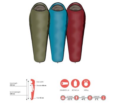 - Наповнювач: Polyester Hollow Fiber (синтетичний утеплювач, який характеризується відмінним співвідношенням теплоізоляційних властивостей до власної ваги, а також має мінімальну залишкову деформацію. Порожнисті мікроволокна вбирають і відводять вологу на зовнішній матеріал спального мішка. Утеплювач підтримує необхідний для теплоізоляції об’єм, і ефективний навіть у вологому стані)