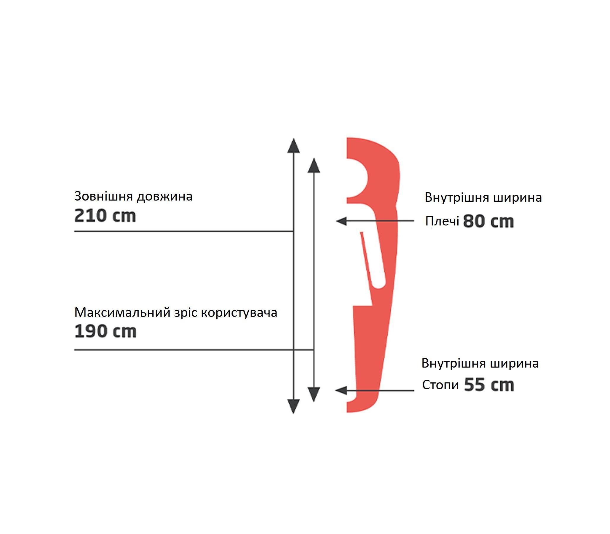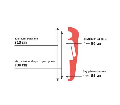 - Розміри (Довжина х Ширина в плечах х Ширина в ногах): 210 x 80 х 56 см