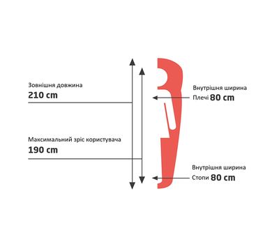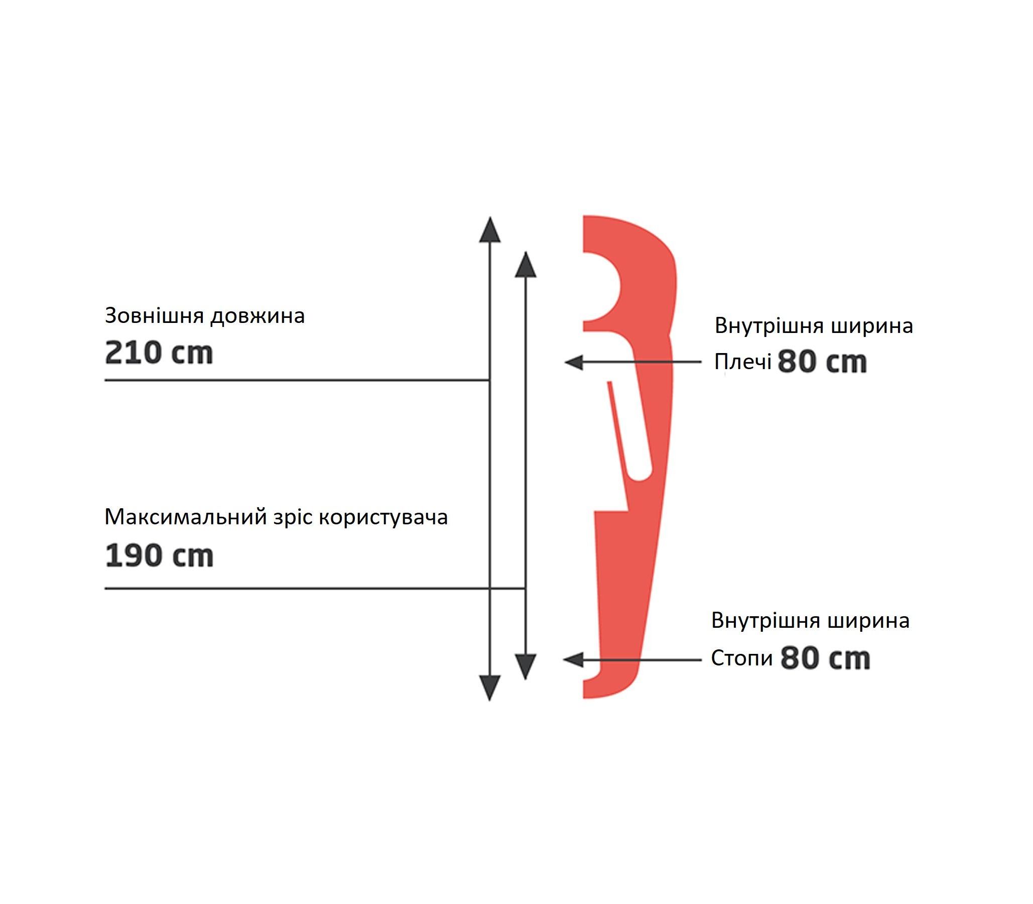 - Розміри (Довжина х Ширина в плечах х Ширина в ногах): 210 x 80 х 80 см