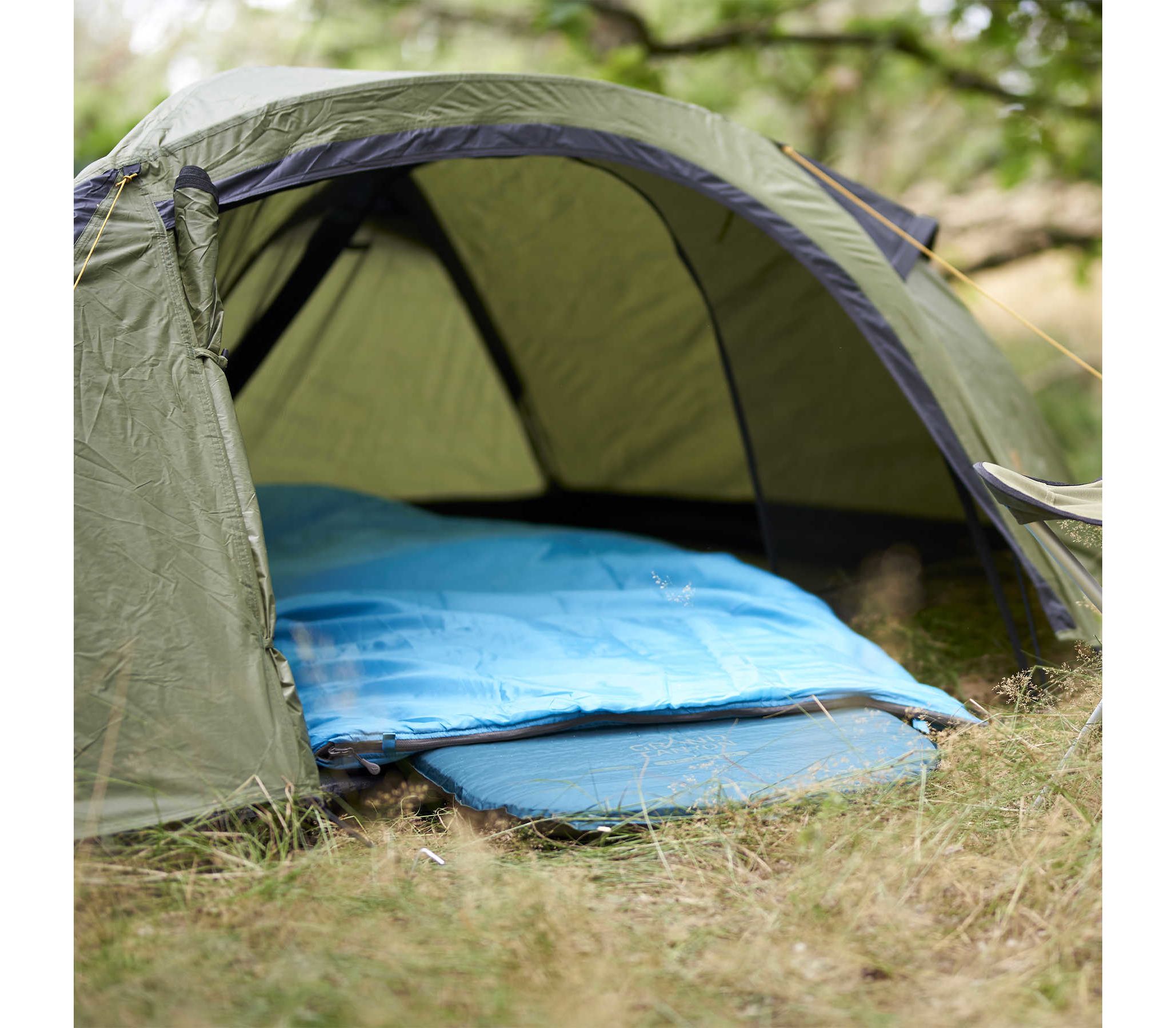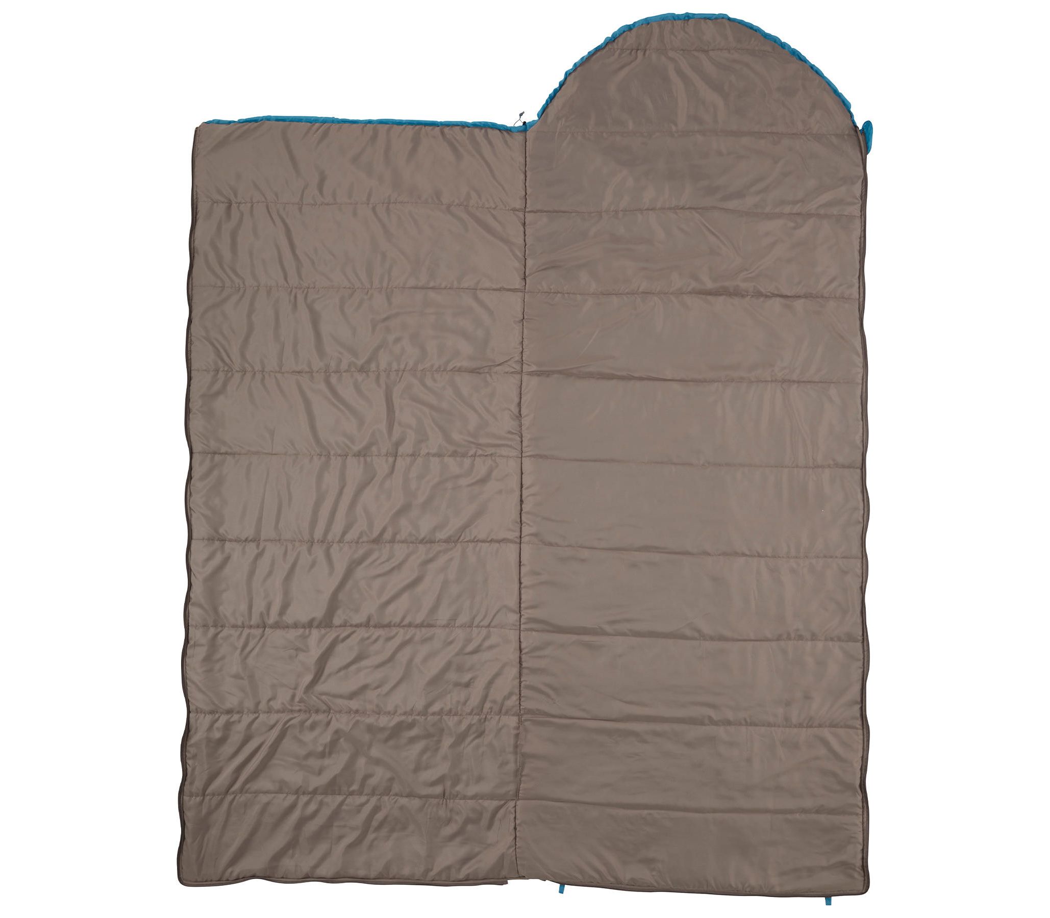 - Спальний мішок має блискавку по всьому периметру, завдяки чому в розстібнутому вигляді перетворюється в двоспальну ковдру шириною 160 см.