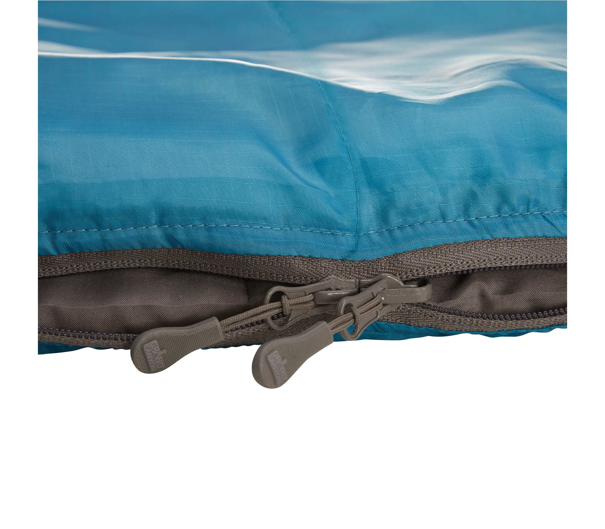 Форма "ковдри" спального мішка Kayenta дозволяє вам вільно рухатися, не обмежуючи вашого комфорту. Застібка-блискавка перетворює мішок на велику пласку ковдру, що робить його універсальним і зручним у використанні не лише як спальний мішок, але й як плед для відпочинку. Підкладка Micro Fibre Polyester має приємну на дотик поверхнею, яка створює ідеальні умови для спокійного і комфортного сну. Зовнішнє покриття спального мішка Grand Canyon Kayenta 190 13°C Caneel Bay Left виготовлене за технологією rip-stop, яка забезпечує стійкість до появи та поширенню розривів. Це забезпечить тривалий термін служби виробу, а також збереже його зовнішній вигляд навіть при інтенсивному використанні.