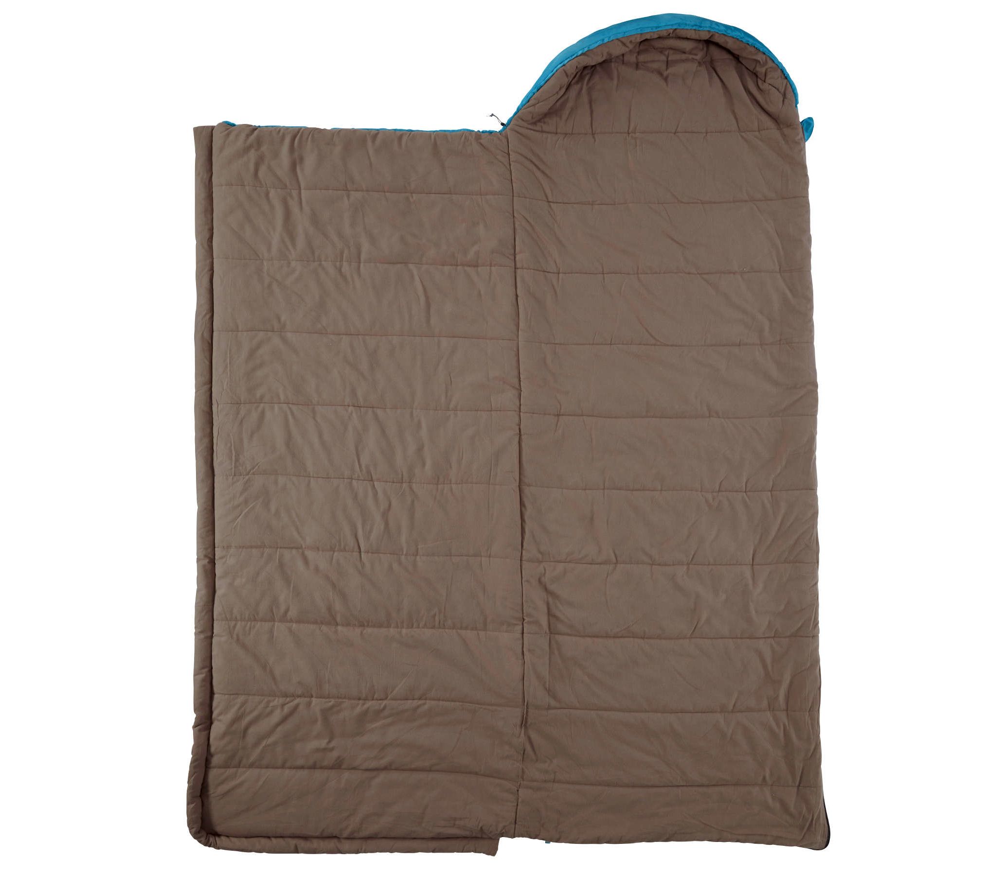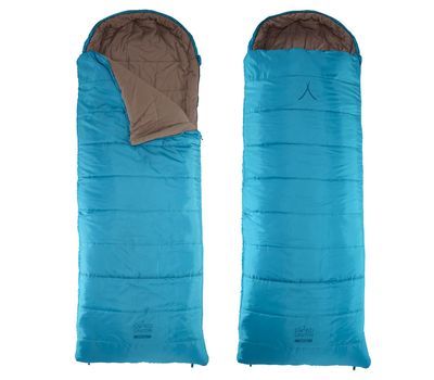 - Спальний мішок має блискавку по всьому периметру, завдяки чому в розстібнутому вигляді перетворюється в двоспальну ковдру шириною 170 см;