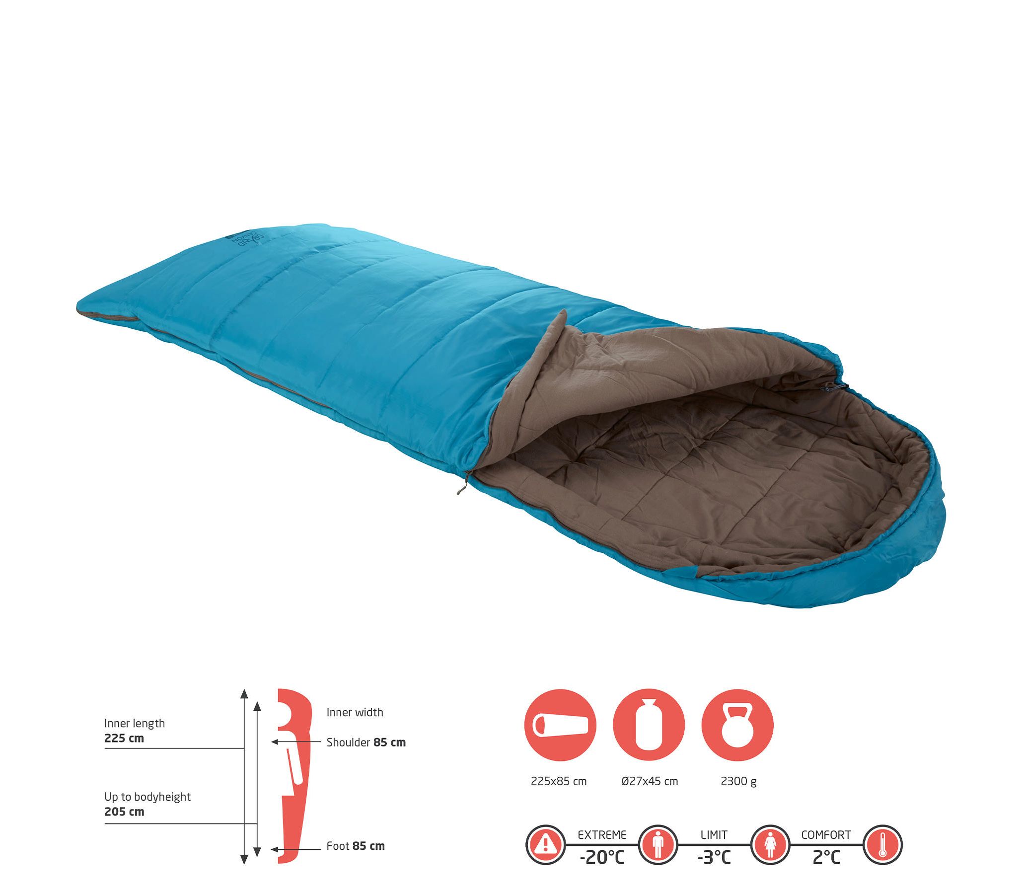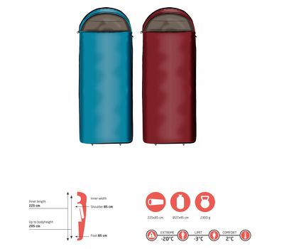 - Збільшена довжина і ширина дозволяє комфортно розміститися в спальному мішку людям повної комплекції з ростом до 205 см, не відчуваючи себе скутими під час сну;