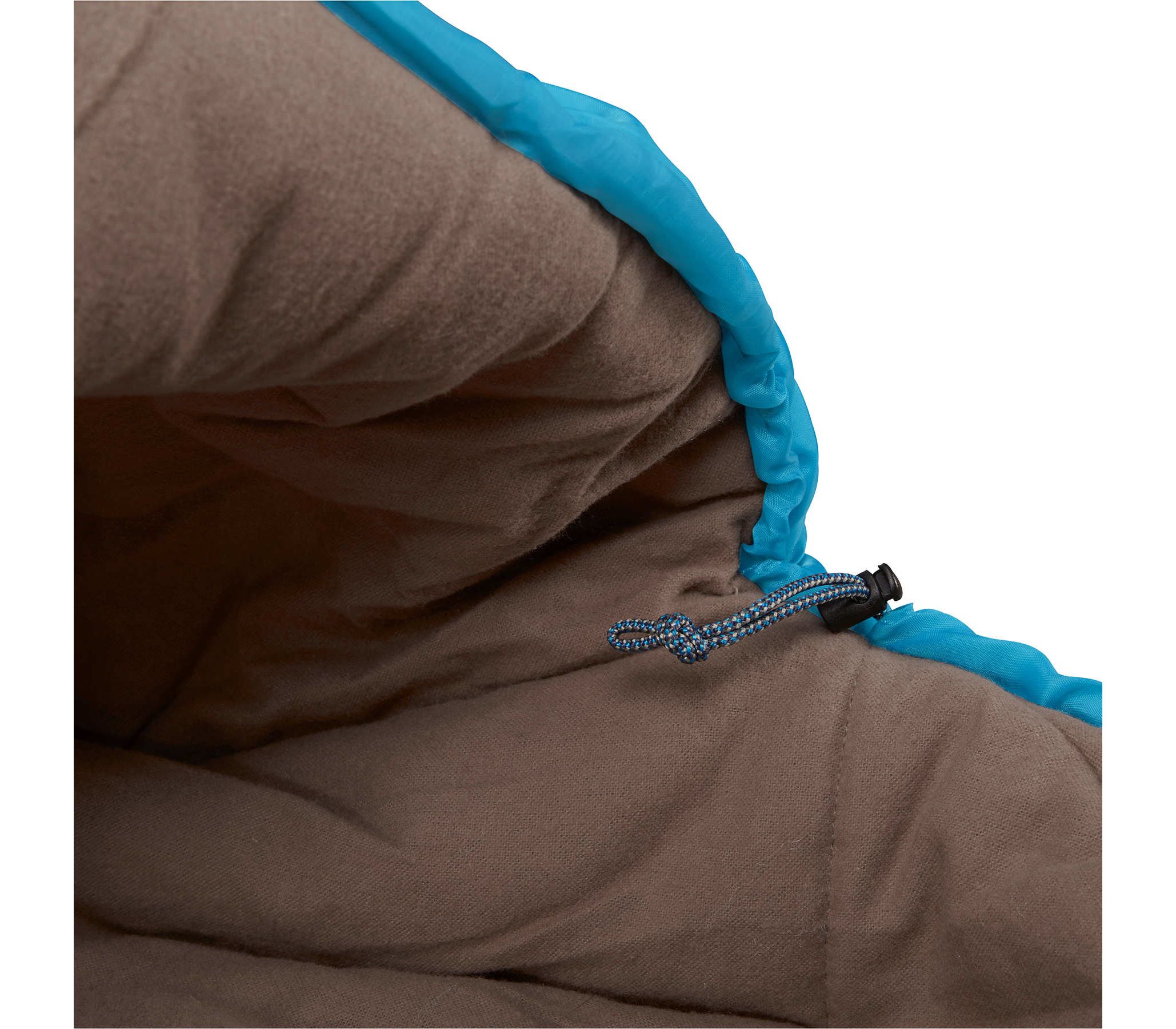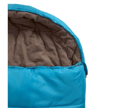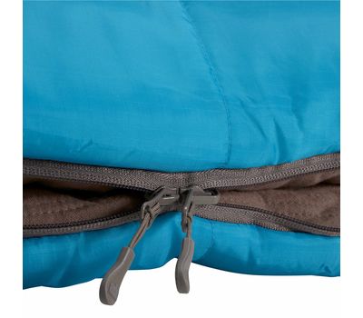 - Блискавка оснащена двома замками, верхній з яких – двосторонній. Таким чином блискавка зручно розстібається і застібається як зовні, так і зсередини, дозволяючи також відкрити нижню частину спального мішка для провітрювання;