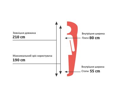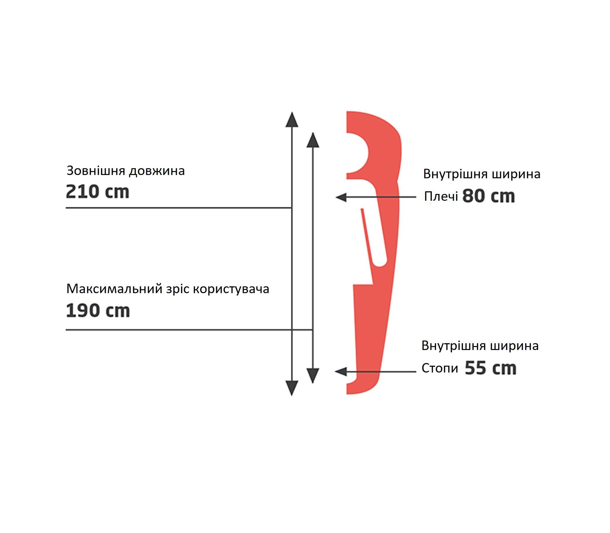 - Розміри (Довжина х Ширина в плечах х Ширина в ногах): 210 x 80 х 55 см