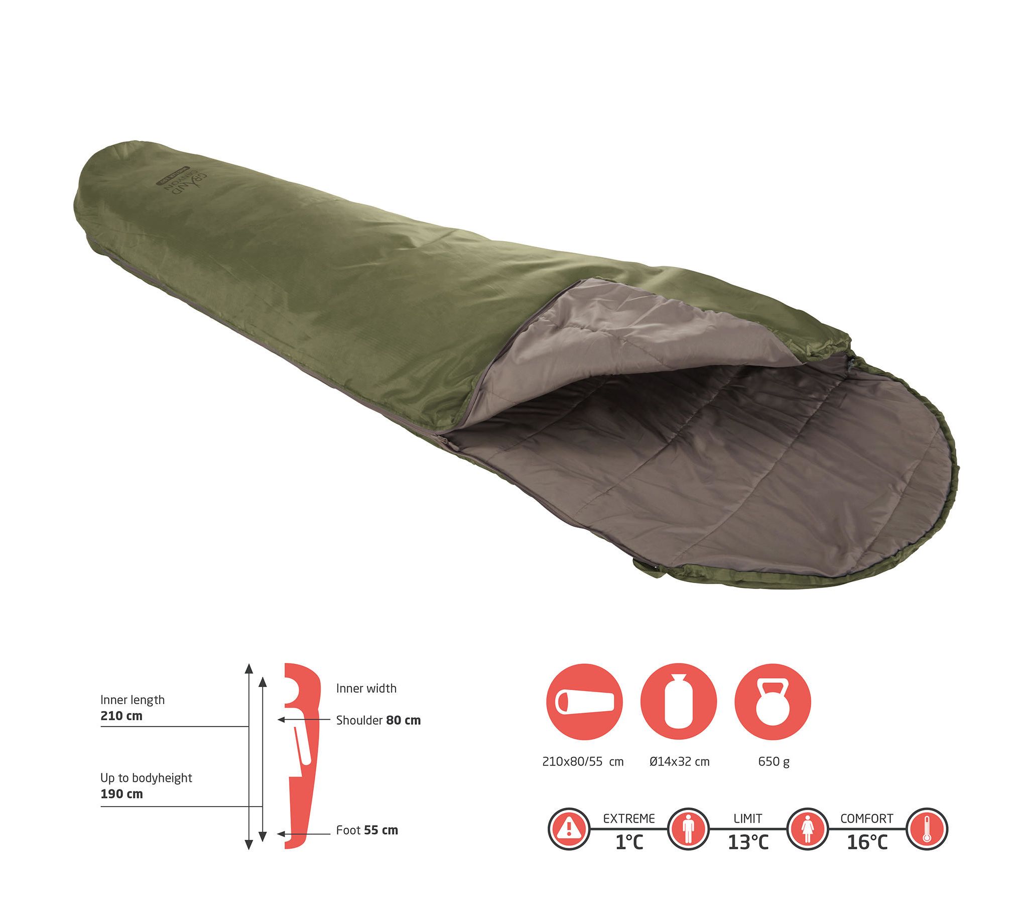 Літній спальний мішок Grand Canyon Whistler 190 13°C Capulet Olive Left - це ідеальний вибір для вашого комфортного відпочинку в подорожах чи під відкритим небом. Завдяки формі "кокон", температурі комфорту до 13°C, максимальному зросту користувача до 190 см - він має найменший розмір і вагу серед спальних мішків GRAND CANYON і зможе поміститися навіть у велорюкзак чи дорожню сумку.