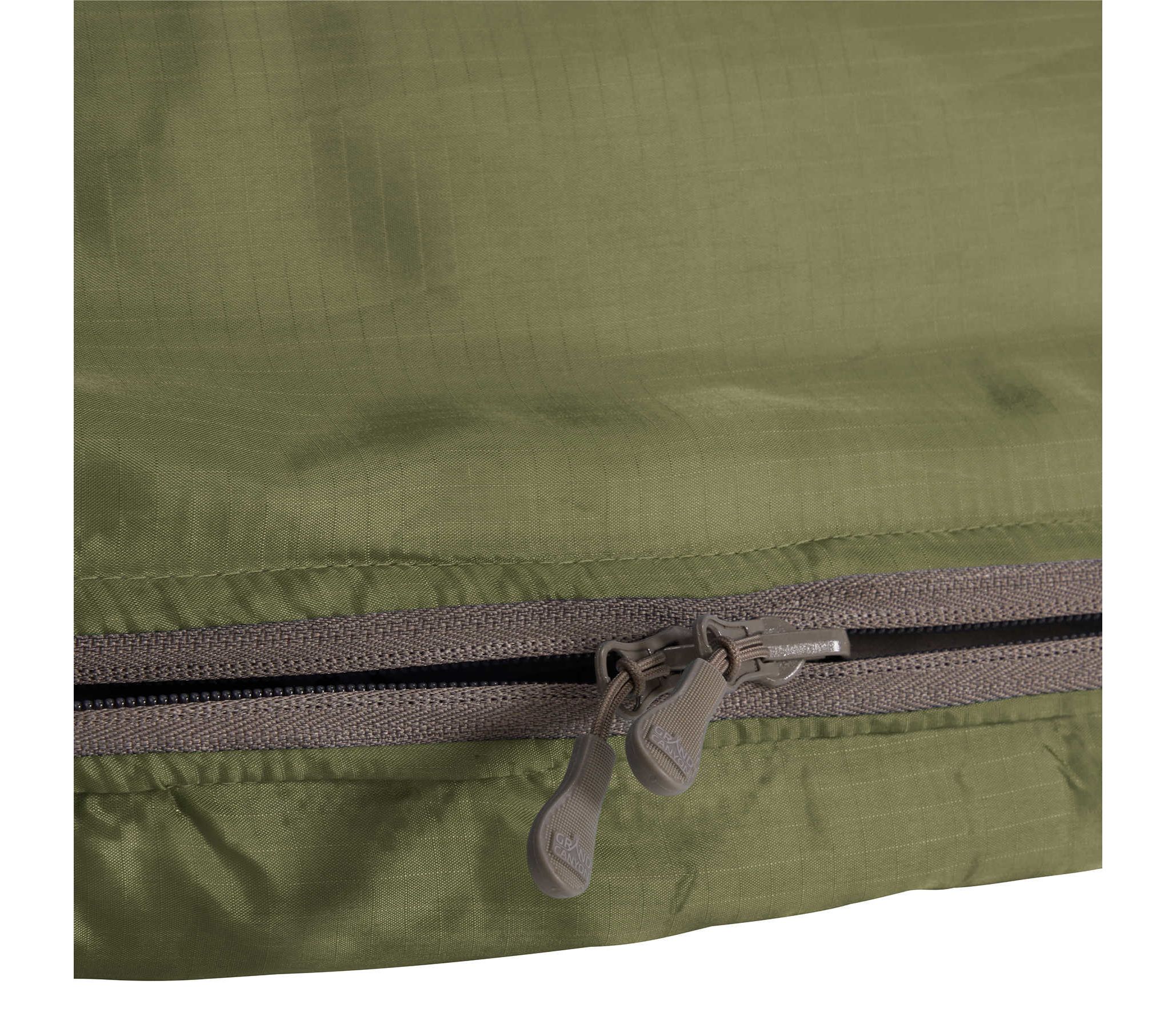 - Блискавка оснащена двома замками, верхній з яких – двосторонній. Таким чином блискавка зручно розстібається і застібається як зовні, так і зсередини, дозволяючи також відкрити нижню частину спального мішка для провітрювання.