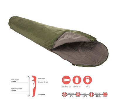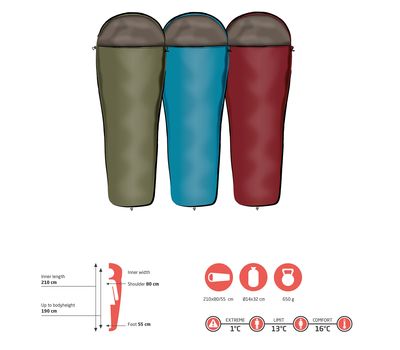 - Температурні характеристики спального мішка наведені згідно з європейським стандартом EN13537, і міжнародним стандартом EN ISO 23537, які дозволяють бути впевненим в рівні теплоізоляції, і порівнювати між собою теплоізоляційні характеристики спальних мішків, вказані згідно даних стандартів.