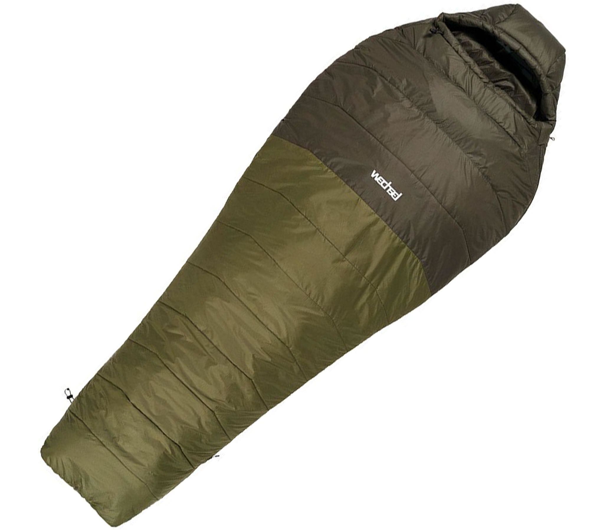 - Дно спального мішка має не лише додатковий шар утеплювача, але й утеплюючий борт вздовж нижньої блискавки та еластичну стяжку для збереження тепла в області ніг.