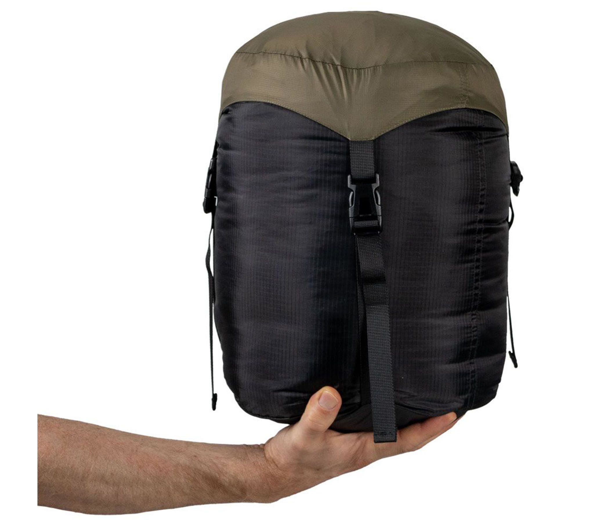- Міцний компресійний чохол з матеріалу Nylon 210T Ripstop DWR дозволяє вдвічі зменшити обсяг упакованого спального мішка, а також захищає його від намокання при невеликому дощі. Верхня і нижня частина чохла мають поліуретанове водозахисне покриття. Чохол оснащений пластиковою фурнітурою YNS.