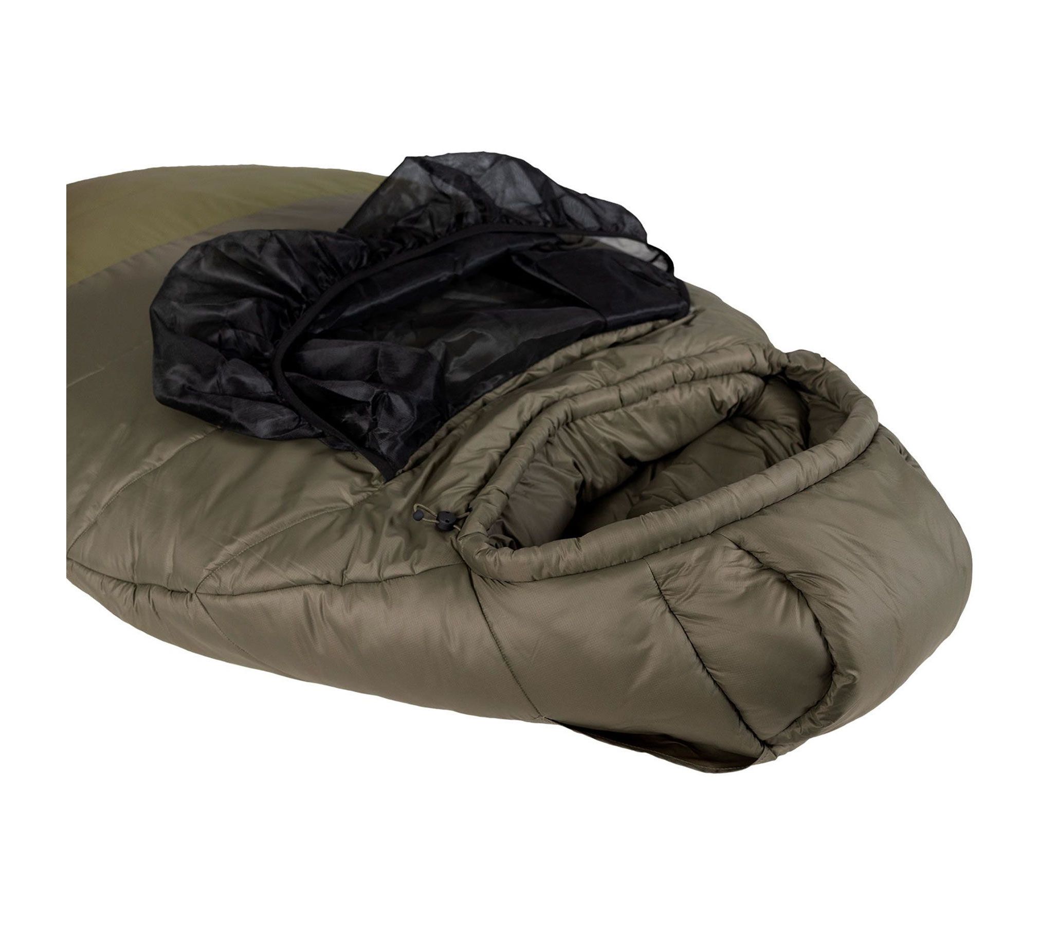 Москітна сітка, розташована в спеціальній кишеньці на блискавці, надійно закриває обличчя від комах під час сну. Тильна кишеня в капюшоні утворить м'яку зручну подушку, якщо в ній розмістити пухову куртку, або інші речі. Зона для ніг має окрему блискавку для провітрювання, додатковий утеплюючий шар, утеплюючий борт вздовж блискавки і еластичну стяжку, що відокремлює зону ніг від решти спального мішку, створюючи додаткову теплоізоляцію.
