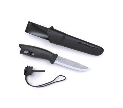 Модель Morakniv Companion MG (C) оснащена клинком довжиною 104 мм, при загальній довжині ножа 218 мм.Форма клинка, як і у всіх ножах цієї серії, drop-point, що дозволяє проводити ножем як ріжучі, так і колючі маніпуляції. Товщина клинка в обуху - 2 мм.