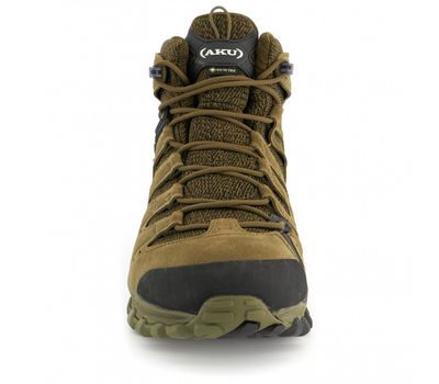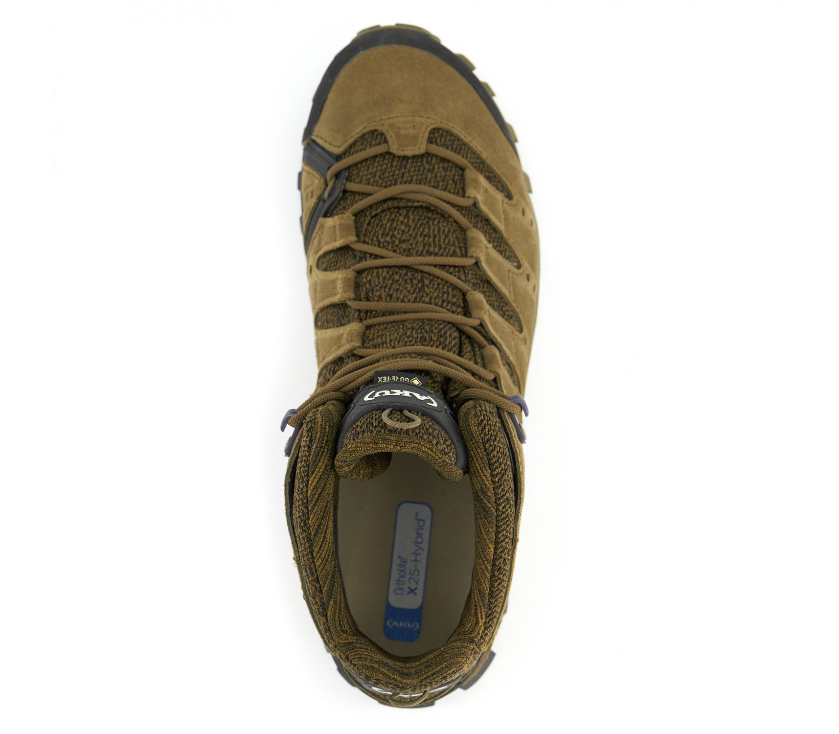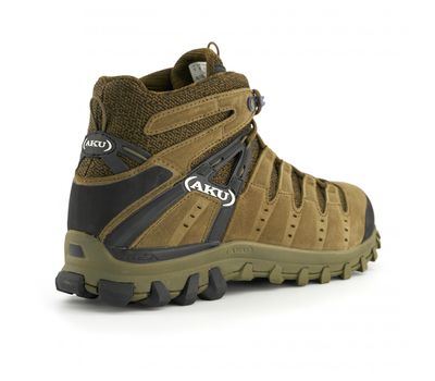 Легка, комфортна, універсальна і дихаюча взуття для динамічного використання в походах Середньої Складності. Верх складається з двох структур: зовнішня частина із замші, з'єднаної незалежними елементами, які анатомічно охоплюють стопу; внутрішня частина з вентильованої сітки. У комплексі основний матеріал спроектований з урахуванням всіх анатомічних тонкощів ноги в різному положенні стопи і при різному навантаженні, що забезпечує максимальний комфорт. У порівнянні з іншими виробниками у бренду AKU мембранна Gore-Tex® Extendet Comfort зроблена в різній щільності: еластична в зоні підйому стопи, де просіходіт основна динаміка при пересуванні і більш міцна в іншій частині ніг, де більше схильна до навантажень. Це зменшує деформацію мембрани від часу використання і продовжує її ресурс. Щоб впоратися зі шкідливими ударними навантаженнями, які впливають на втому ніг і здоров'я в цілому, проміжна підошва EVA зроблена м'якою і пружинною, при цьому більш посиленою в області п'яти, куди припадає найбільше ударного навантаження. Для абсолютного комфорту в модель Alterra Lite додані гібритні устілки Ortholite X-25 Hybrid, де вся основа зроблена мікропористої і антибактеріальної, п'ята пом'якшена пінкою EVA і супінатор виконаний комбінованим, що компенсує підйом в середині стопи і може допомогти людям з плоскостопістю.  Асиметрична конструкція підошви зроблена за ексклюзивною технологією AKU Elica Natural Stride System: