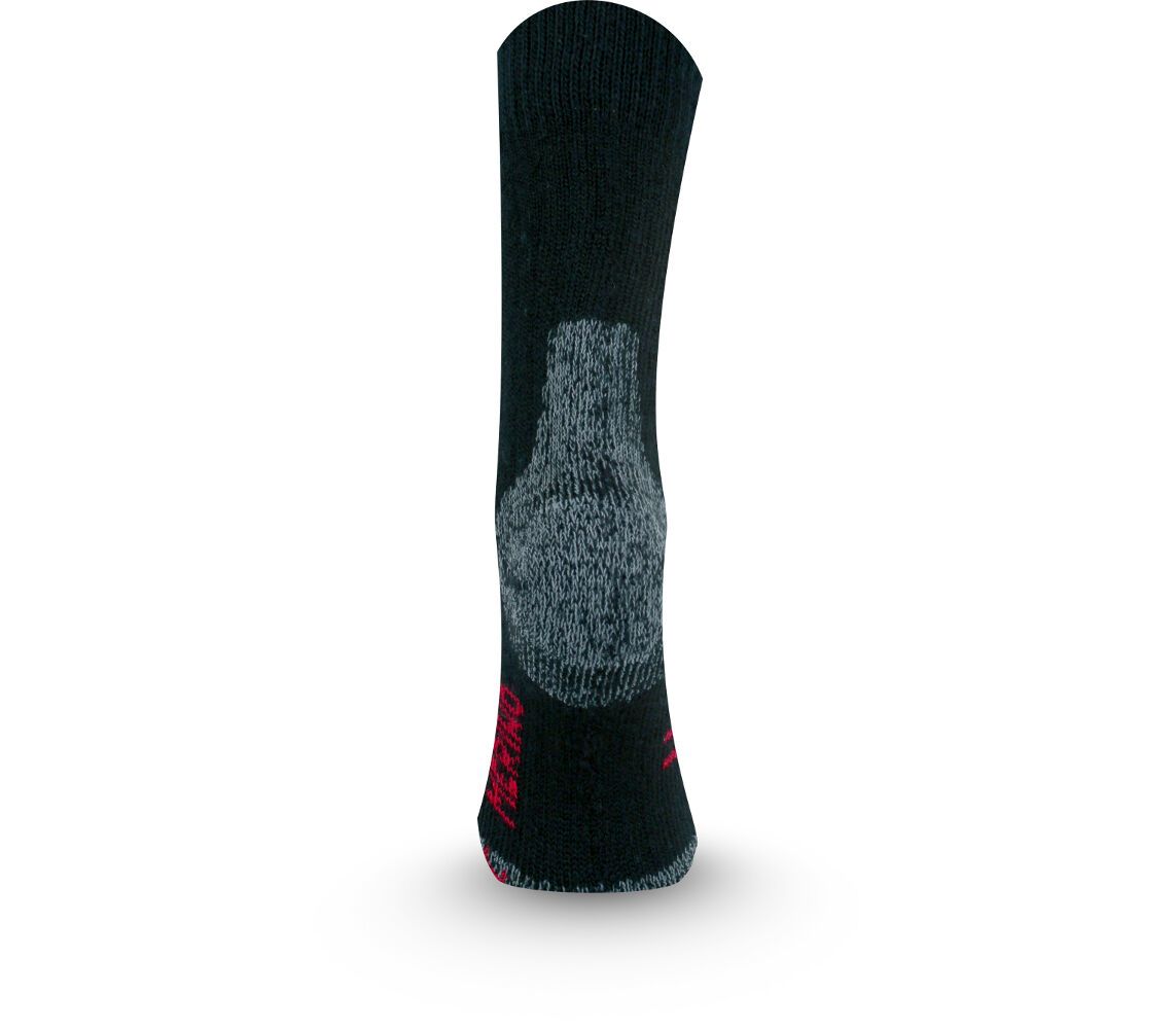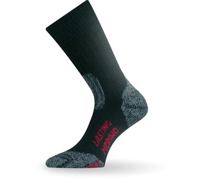 Шерстяне волокно, придатне для виготовлення шкарпеток завдяки здатності виведення поту, всмоктуючої здатності, теплоізоляції, стійкості до механічних впливів, еластичності та екологічній нешкідливості. Чудові термоізоляційні властивості можна використовувати під час трекінгу в зимовий період. У літній період Ви обов'язково оціните здатність волокна вбирати вологу до 30% об'ємної ваги, залишаючись при цьому сухим на дотик, це означає, що навіть в мокрих шкарпетках ноги залишаються теплими.