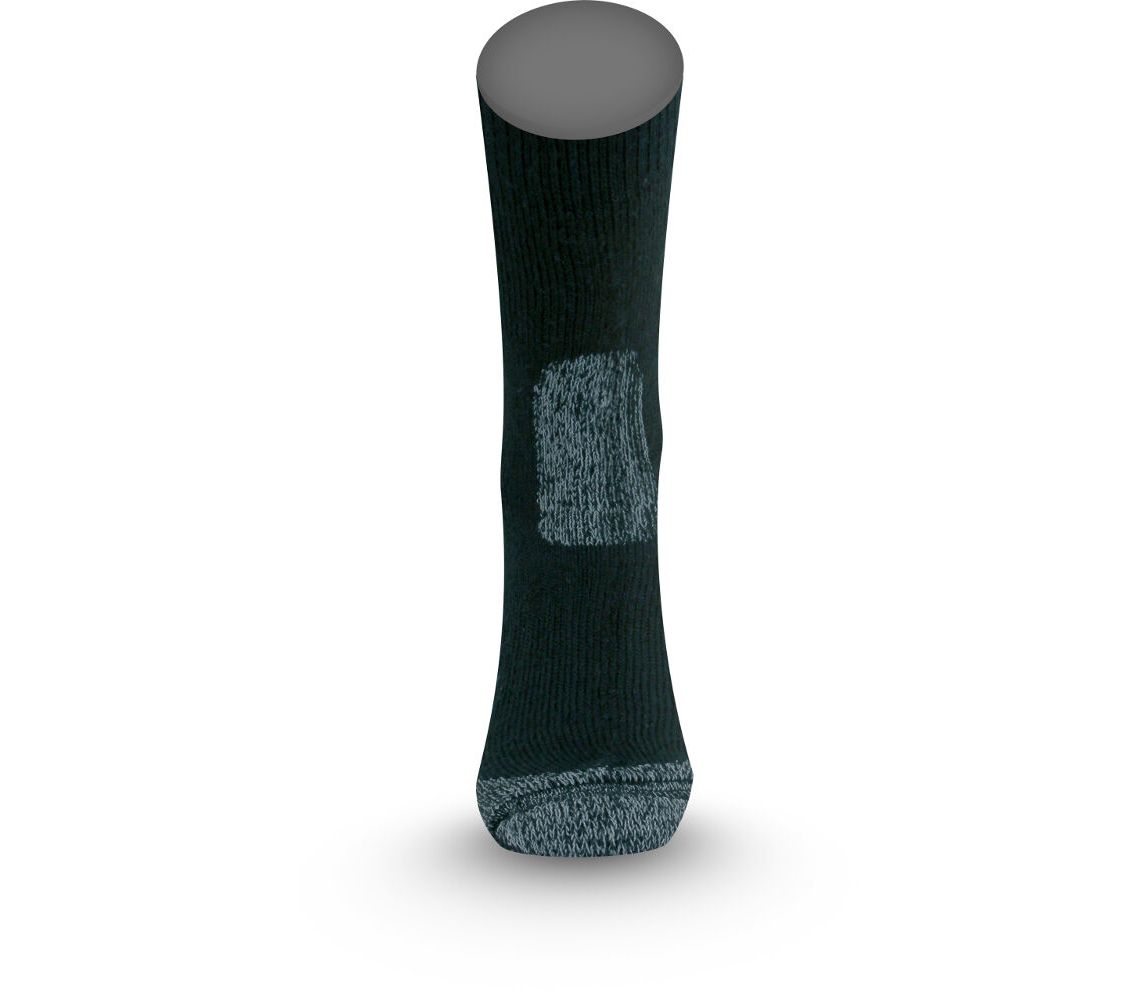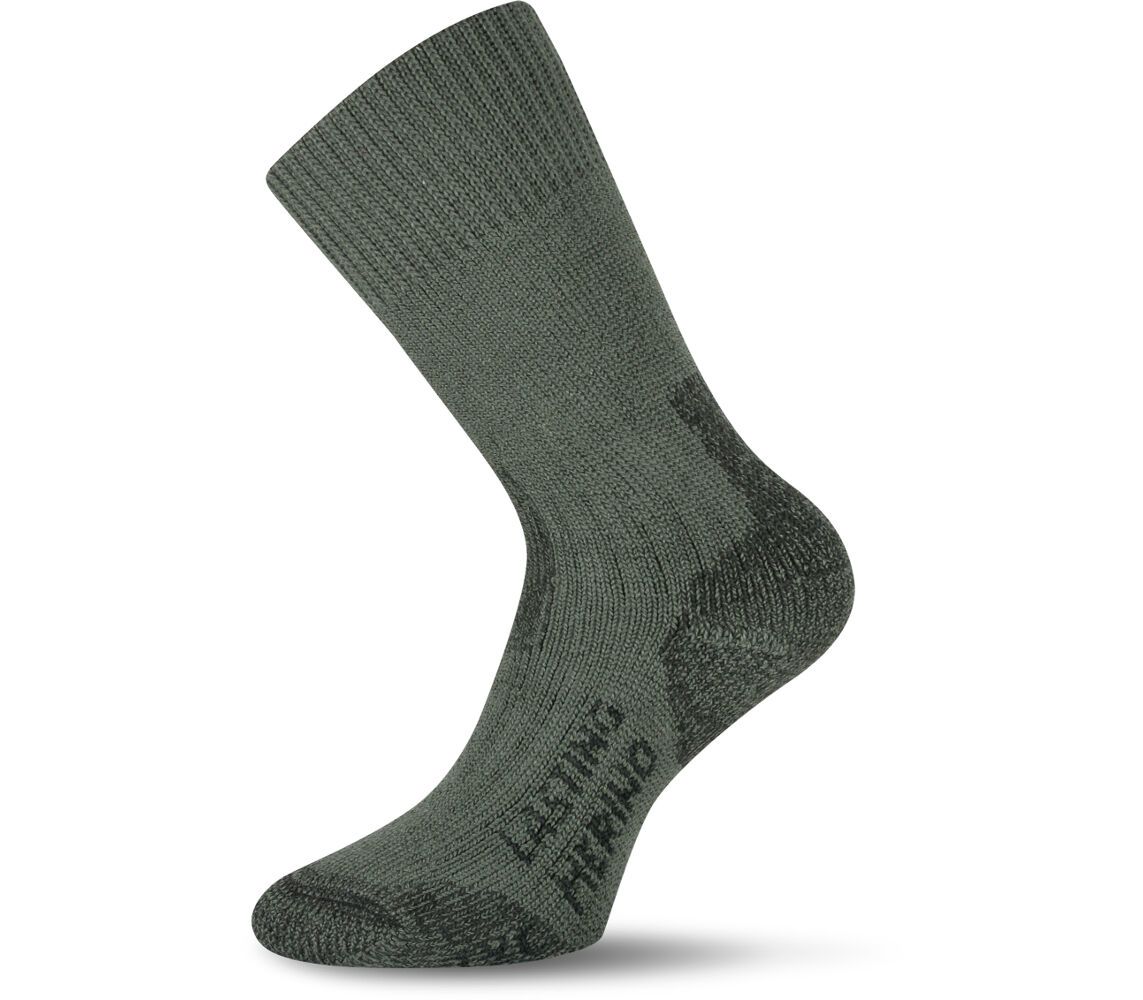 Шерстяне волокно, придатне для виготовлення шкарпеток завдяки здатності виведення поту, всмоктуючої здатності, теплоізоляції, стійкості до механічних впливів, еластичності та екологічній нешкідливості. Чудові термоізоляційні властивості можна використовувати під час трекінгу в зимовий період. У літній період Ви обов'язково оціните здатність волокна вбирати вологу до 30% об'ємної ваги, залишаючись при цьому сухим на дотик, це означає, що навіть в мокрих шкарпетках ноги залишаються теплими.
