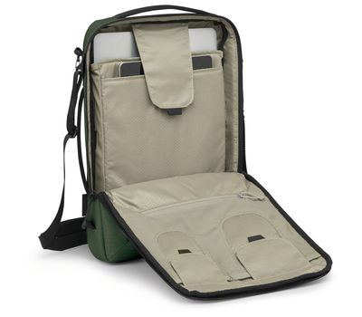 - включає дві кишені Tech Stash, які вміщують більшість популярних штучок, як-от портативні жорсткі диски, компактні камери, мікропроектори, біноклі тощо
