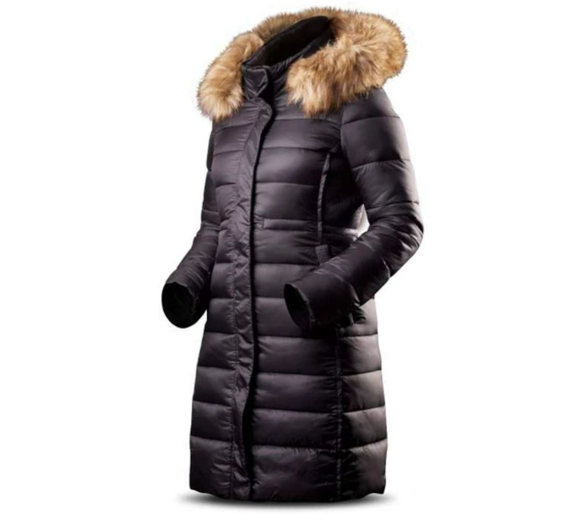 Trimm Vilma Wm`s- подовжена жіноча зимова куртка. Синтетичний наповнювач гарантує відмінну теплоізоляцію, а зовнішній нейлоновий матеріал оброблений водовідштовхувальним просоченням. Є знімний капюшон з штучним хутром та високим коміром для захисту від вітру та дві кишені для рук на блискавках. Манжети еластичні для додаткового захисту від холоду. Куртка розрахована на щоденне використання у місті та зимові подорожі.