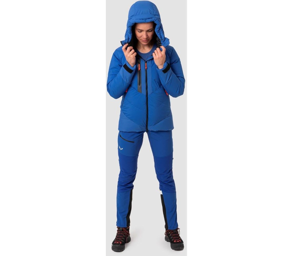 Salewa Ortles Heavy Wms - легка і тепла жіноча куртка для альпінізму та гірського туризму. Двошарова мембрана Powertex відмінно захистить від пронизливого вітру в горах. Куртка спроектована без шкоди для природи і сертифікована компанією Bluesign, яка підтримує екологічно чисте виробництво. Крім того пуховий наповнювач затверджений стандартом Responsible Down Standard.