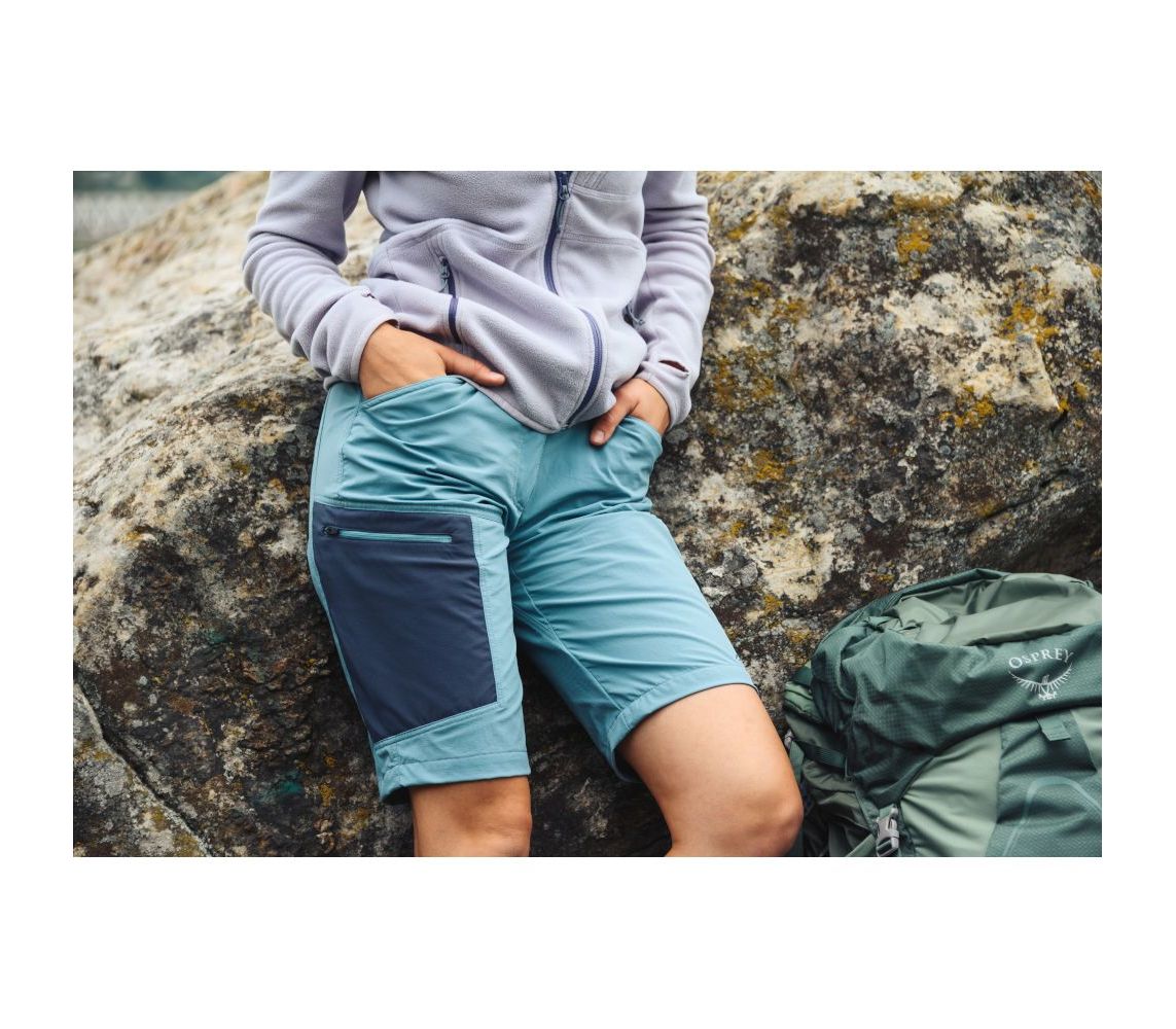 Turbat Bali - технічні жіночі шорти для трекінгу та активного відпочинку у спеку. Виготовлені із легкого, еластичного матеріалу, який дуже швидко сохне. Відмінно підходять для літніх походів в гори, комбінованих подорожей, пригод у активних турах, дослідження екзотичних місць. Є дві відкриті, широкі кишені, у які легко засунути руки. Збоку є кишеня на блискавці, куди зручно помістити карту, паспорт або телефон.