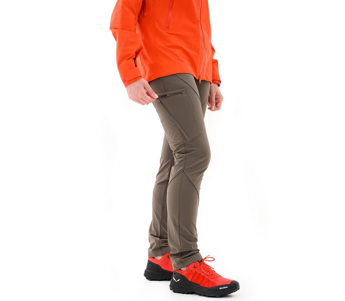 Легка Softshell тканина з водовідштовхуючим DWR покриттям захищає від мінливої гірської погоди, вологості чи вітру. Штани мають дві кишені на блискавці згори та одну велику кишеню з боку, що закривається. Це ідеальний вибір для трекінгу, коли шукаєш максимально зручний одяг, який не заважатиме долати задумані висоти.