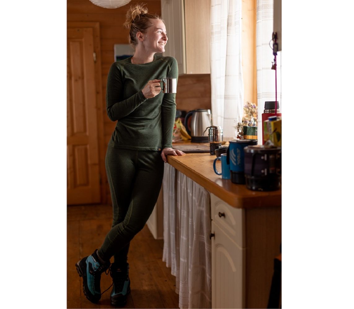 Жіночі термоштани, які відмінно відводить вологу. У складі є вовна меринос (15%), яка відома своїми природними зігріваючими властивостями. Завдяки пропорції вовни та поліестру (15/85), цю річ комфортно використовувати у подорожах протягом декількох днів та тривалих походах, адже вона стійкіша до утворення запаху і швидше сохне.