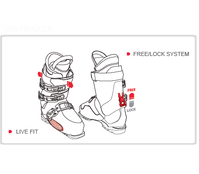 Free/Lock System (переключатель ходьба/катание) позволяет лыжнику добраться в любое место как на трассе, так и вне ее, при этом сохраняя контроль и уверенность во время спуска.